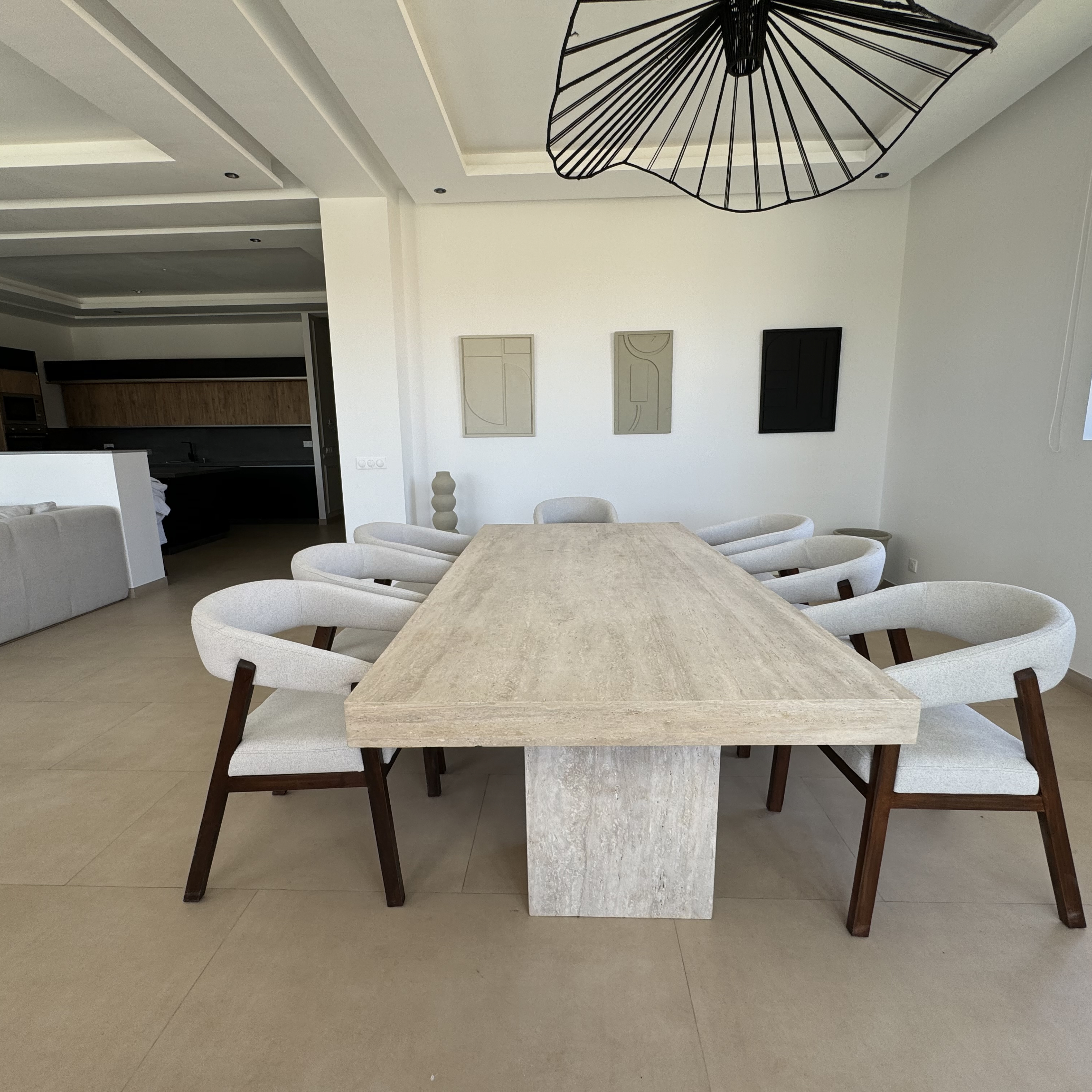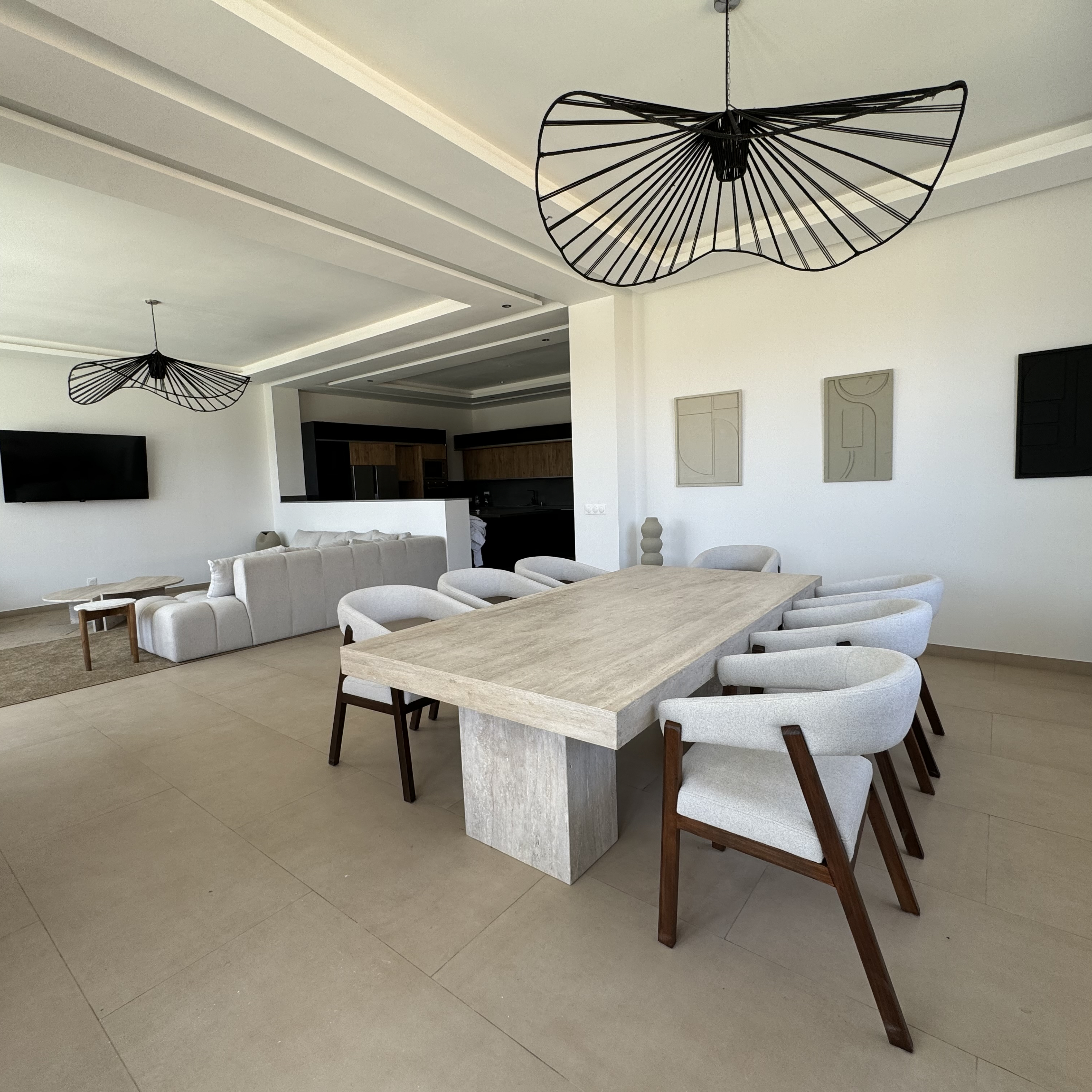 La villa est équipée d’une cuisine moderne entièrement aménagée, idéale pour préparer vos repas ou faire appel à un chef. Les espaces extérieurs invitent aux moments de partage : terrasse ombragée, coin repas, barbecue… tout est pensé pour créer de beaux souvenirs.