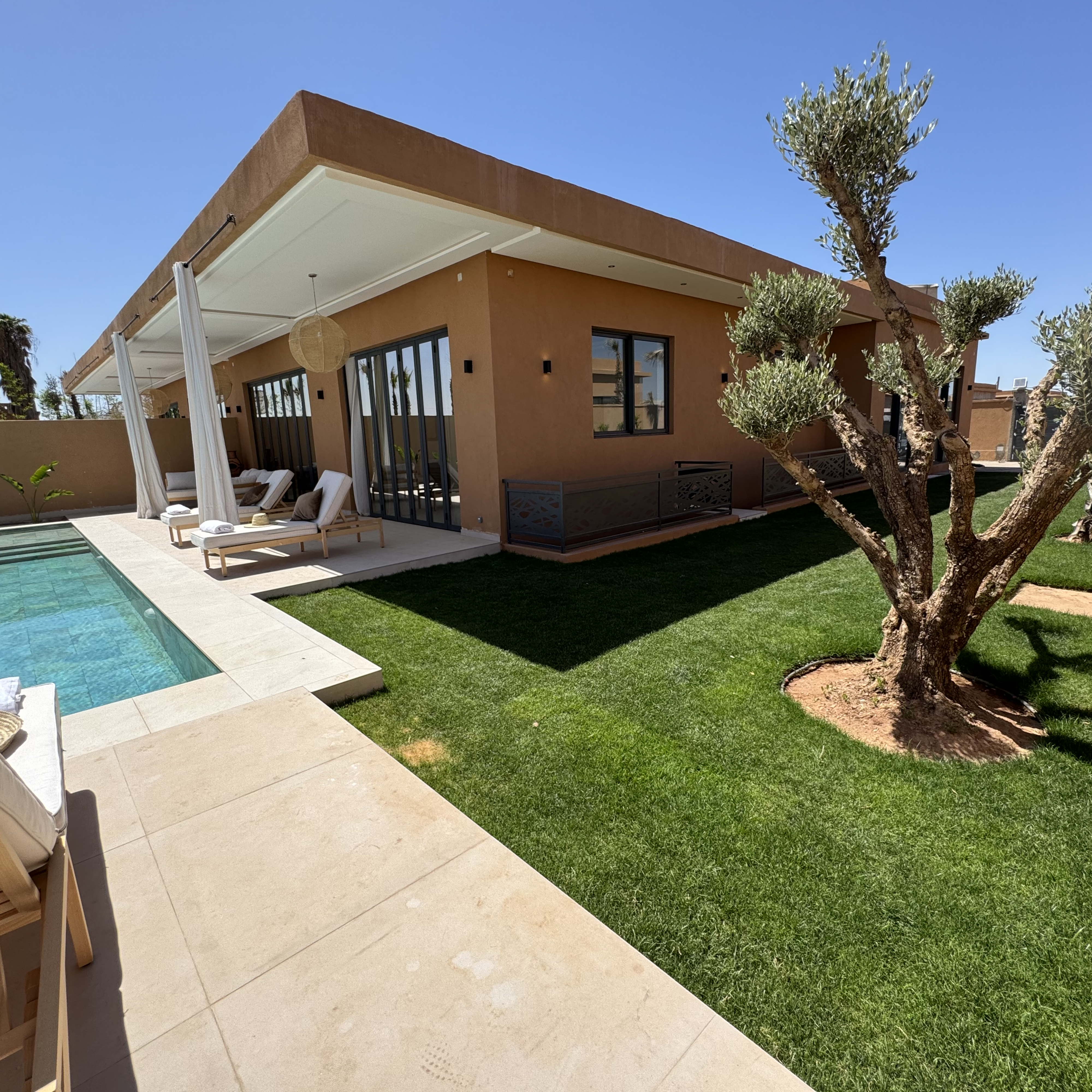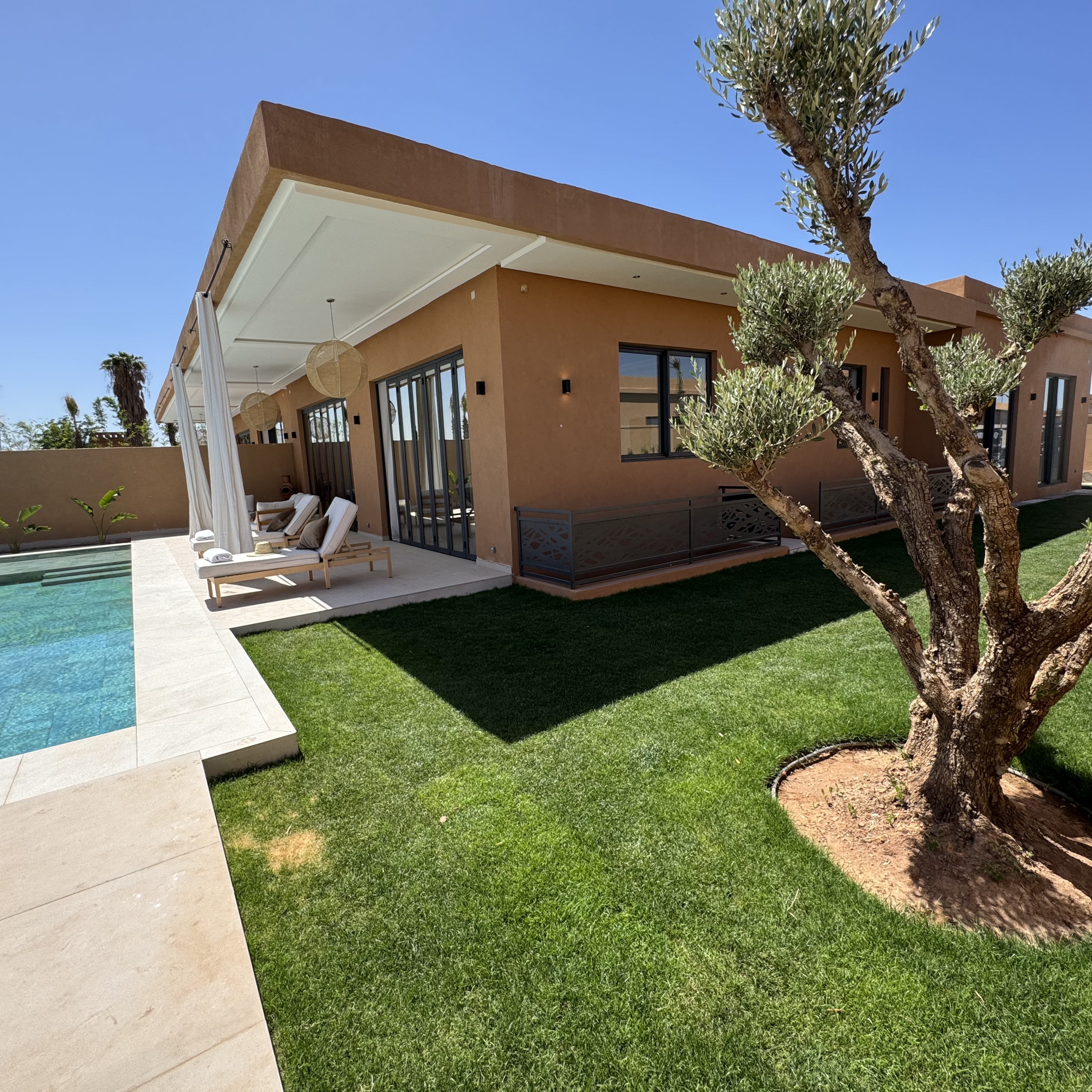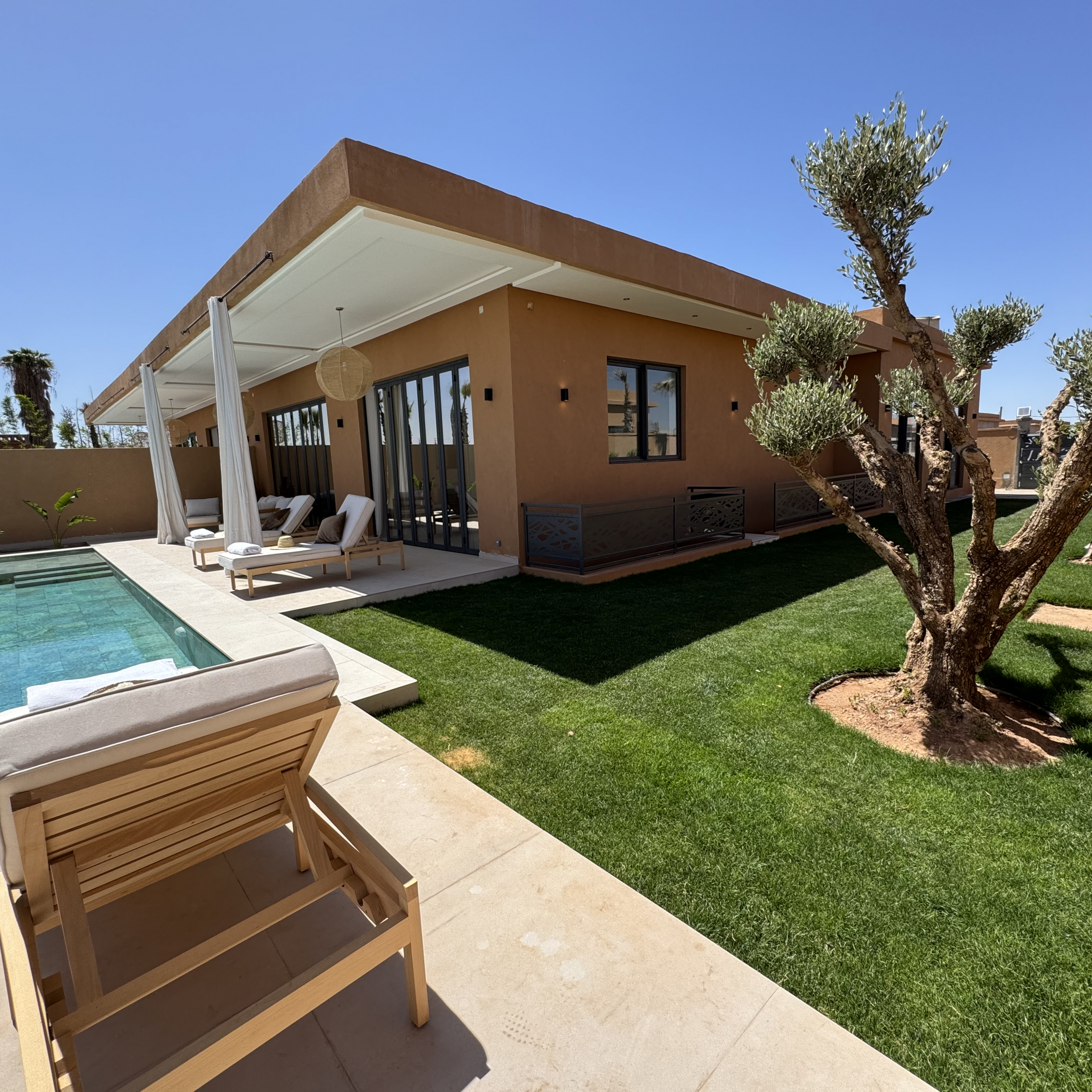 À seulement 20 minutes du centre animé de Marrakech, cette villa vous accueille dans une atmosphère apaisante, idéale pour des séjours en famille ou entre amis.