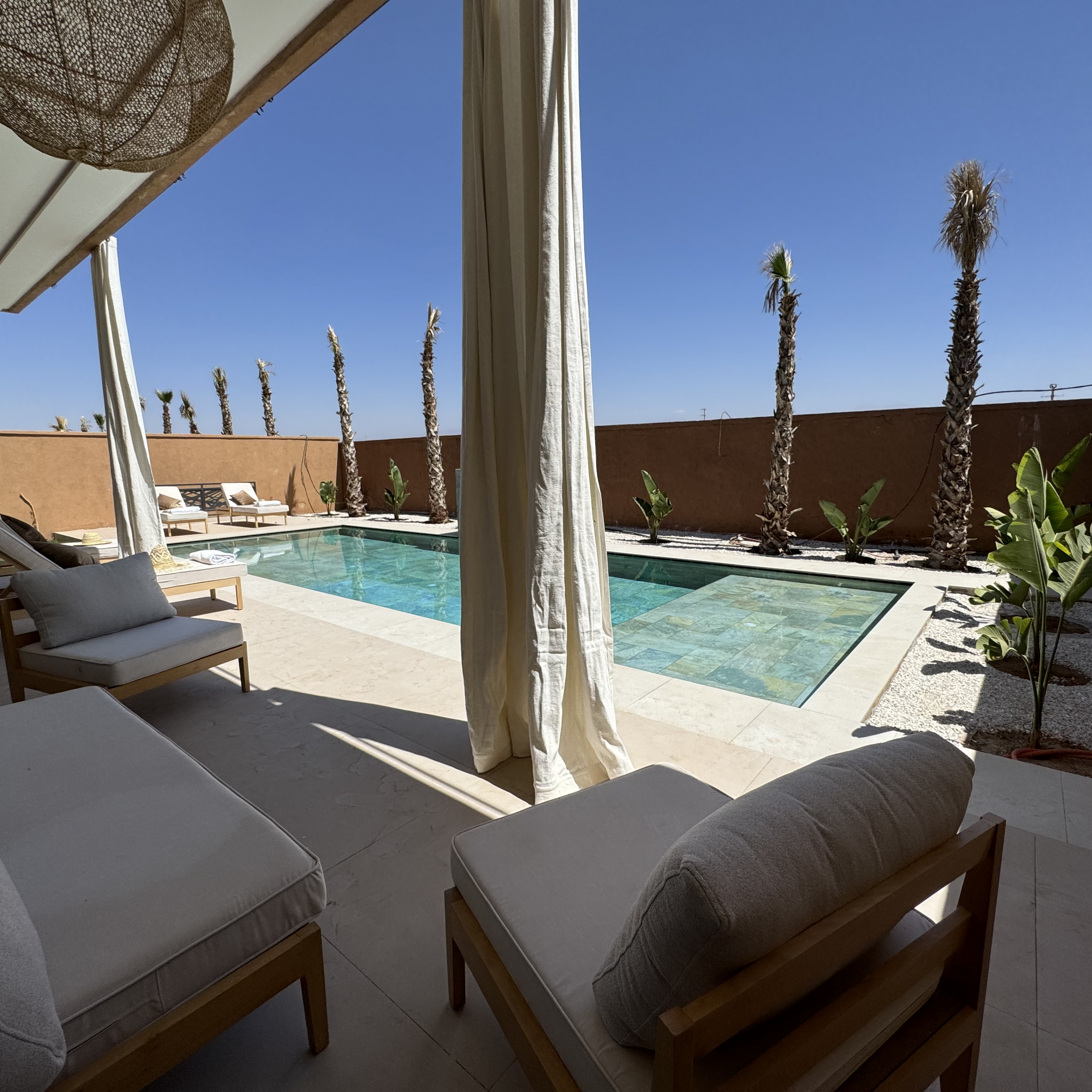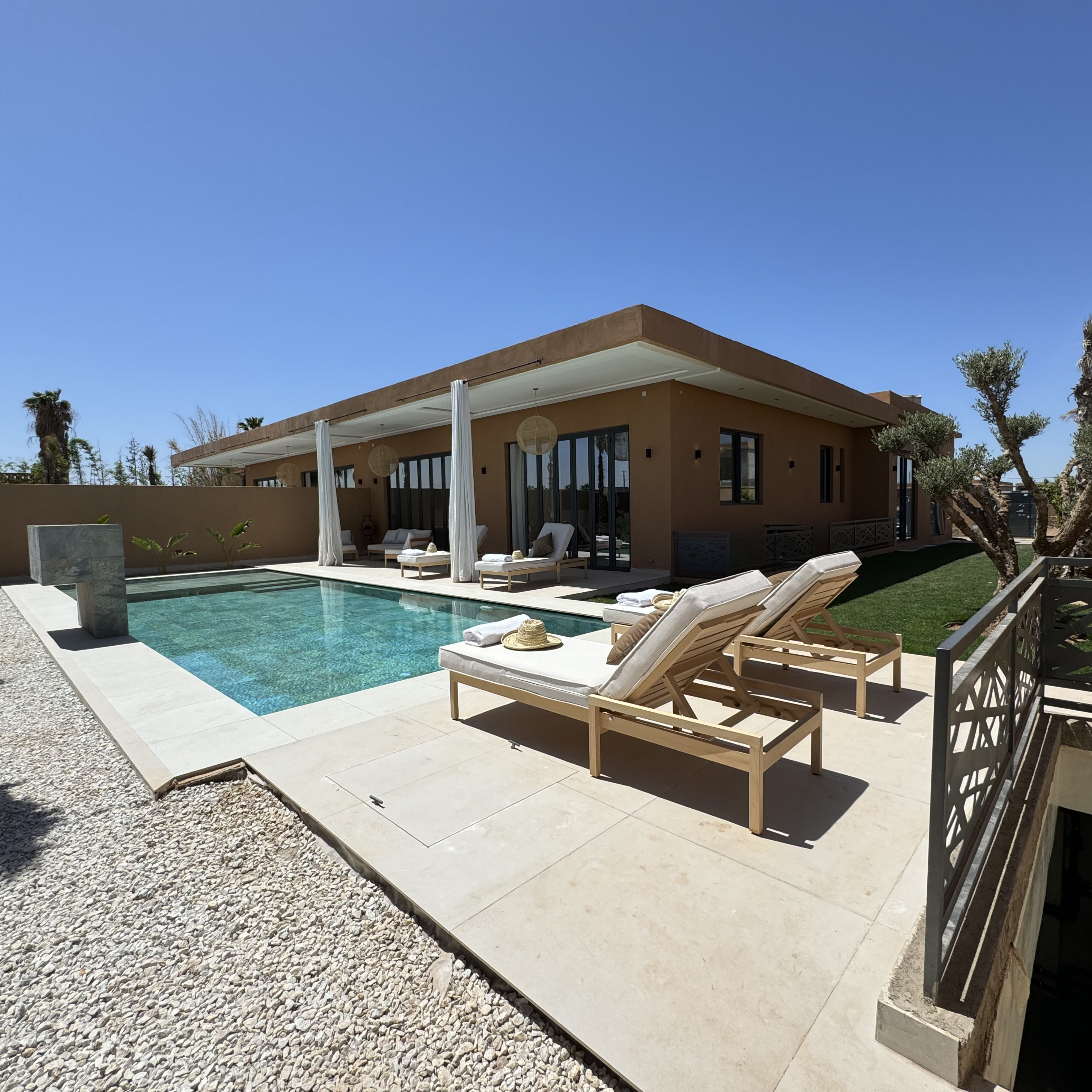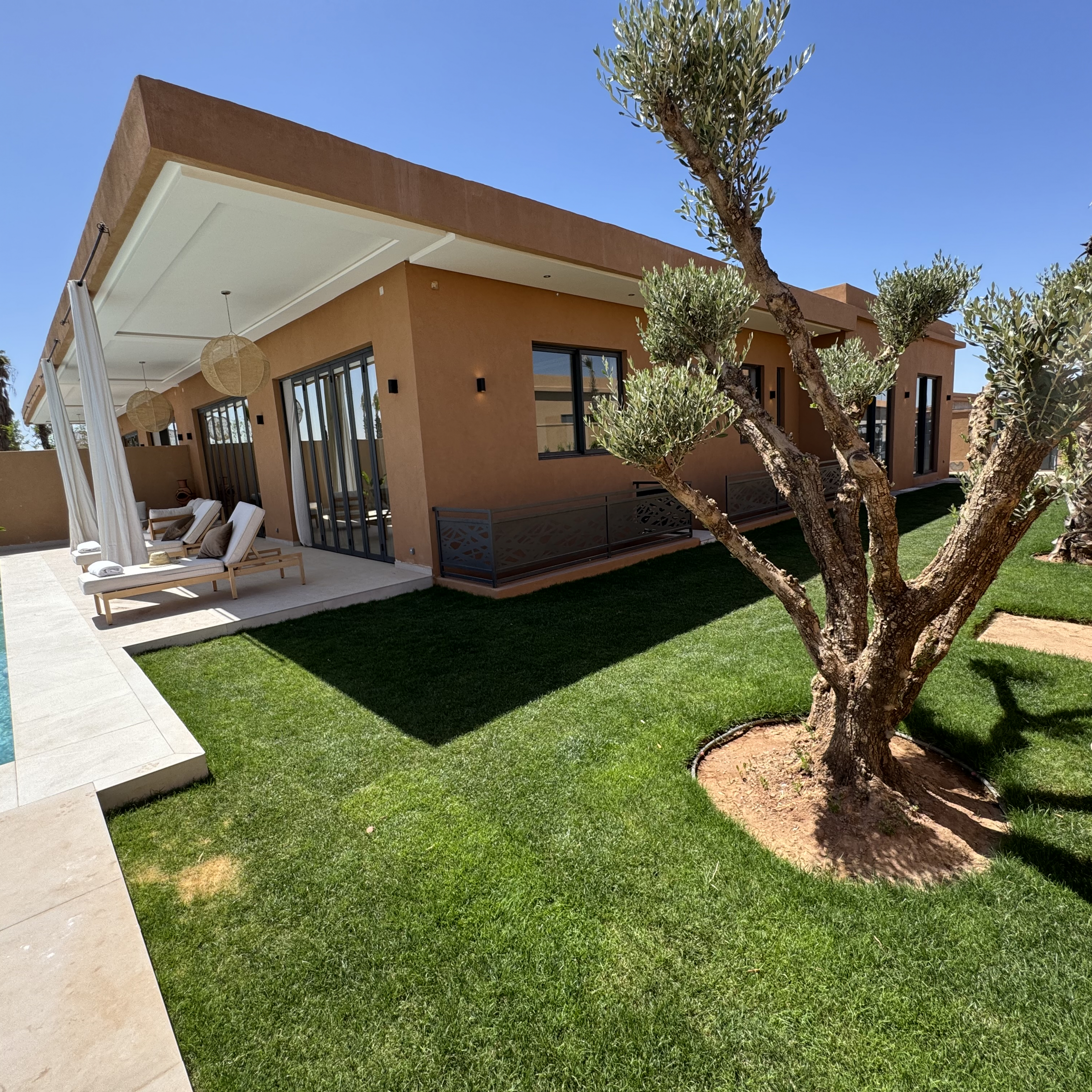 À seulement 20 minutes du centre animé de Marrakech, cette villa vous accueille dans une atmosphère apaisante, idéale pour des séjours en famille ou entre amis.