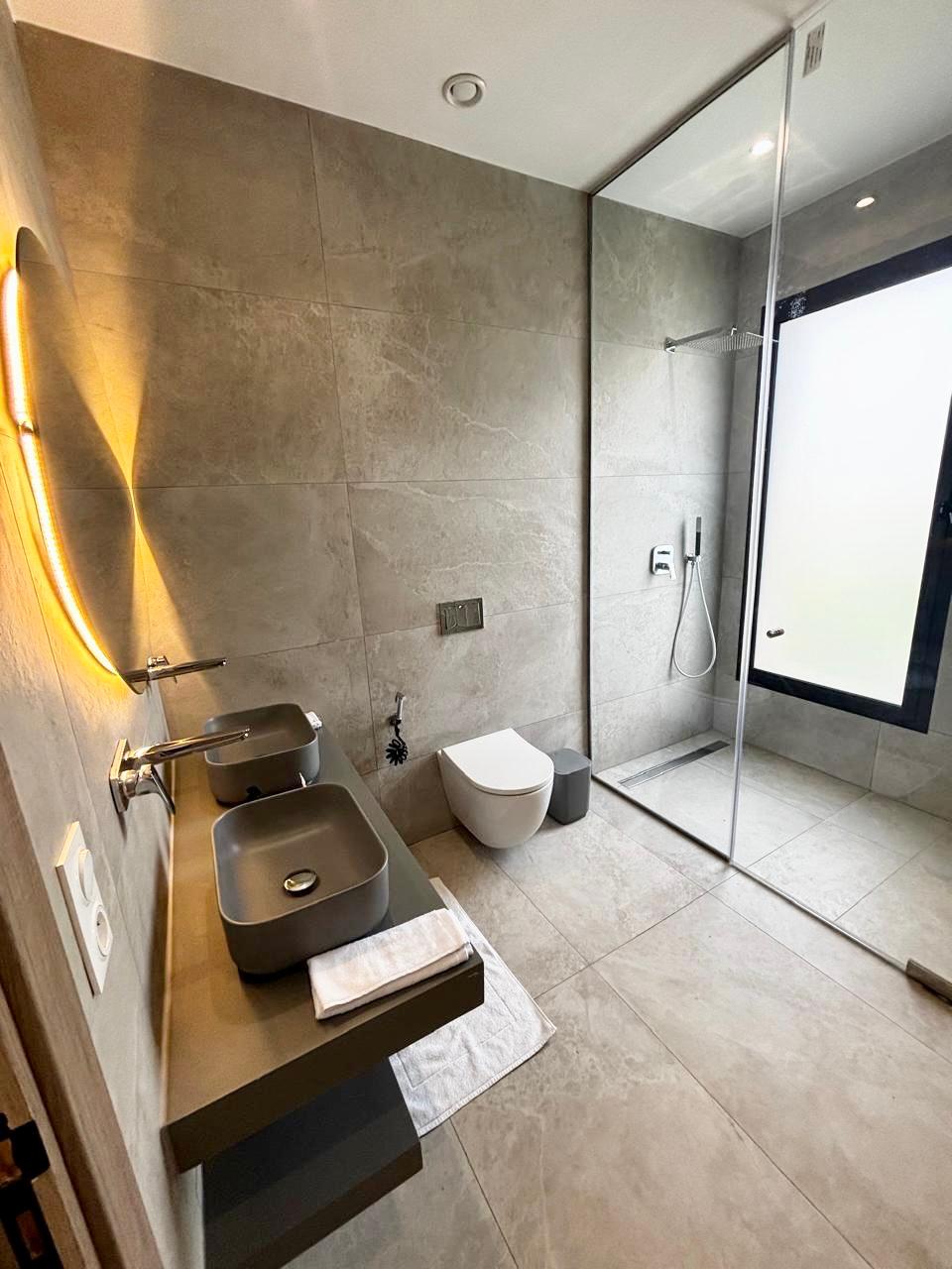 La villa dispose de trois chambres spacieuses, chacune avec sa salle de bain privative, garantissant intimité et sérénité à chaque hôte. Décorée avec beaucoup de goût, la villa combine design contemporain, douceur des matériaux et ambiance apaisante pour créer un véritable cocon où l’on se sent immédiatement chez soi.