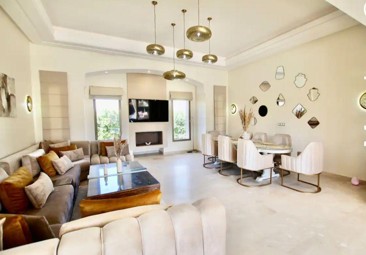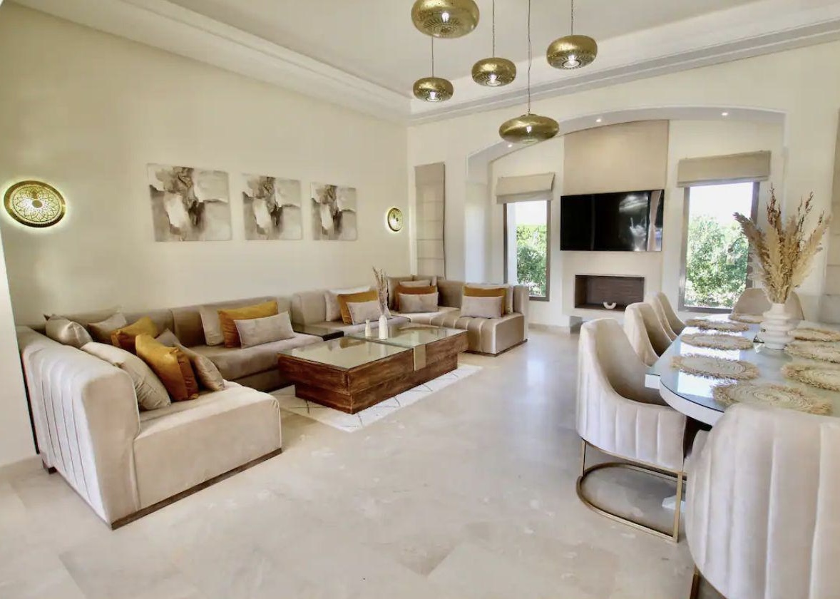 Située sur la route de Fès, à seulement 30 minutes du centre-ville de  Marrakech, cette somptueuse villa incarne le raffinement et la tranquillité. Conçue avec une décoration élégante et soignée, elle offre un cadre chaleureux et accueillant, idéal pour des moments de détente et de sérénité.
